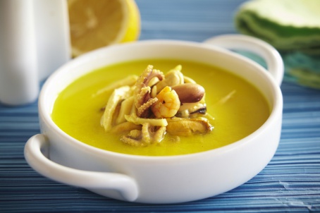 - Отвар процедить, влить его в горячий рыбный бульон с карри. Довести до кипения, добавить кокосовое молоко и морской коктейль, подержать на огне несколько минут, посолить по вкусу.