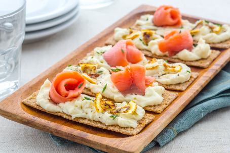 Ржаные хлебцы с кетой и карамелизованным лимоном