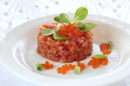 - красная лососёвая икра «Меридиан» и салат фрисе для подачи