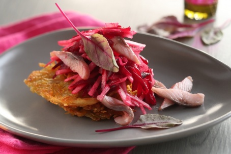 Закуска из сельди на картофельных рёшти с салатом из свеклы