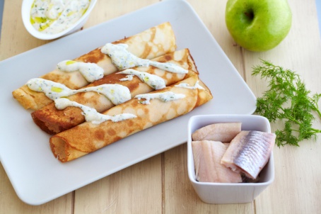 Блины с сельдью и йогуртовым соусом