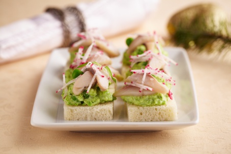 Канапе с зеленым горошком и сельдью