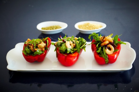 - Слить из половинок перцев воду, промокнуть салфетками. Разложить приготовленную смесь в перцы и подать к столу.
