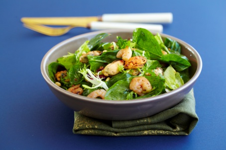- Выложить салат на блюдо, сверху посыпать кедровыми орешками.