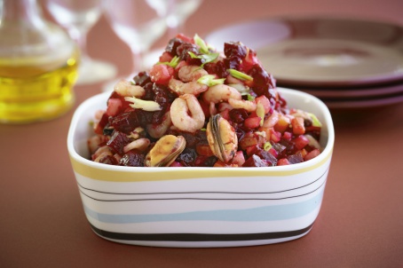 Винегрет с мидиями и креветками