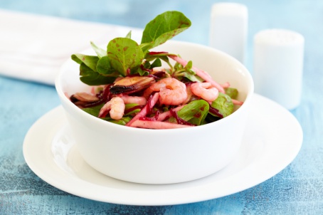 - Добавить морепродукты с заправкой, перемешать и подать к столу.
