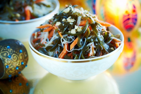 Салат из рисовой лапши с морской капустой